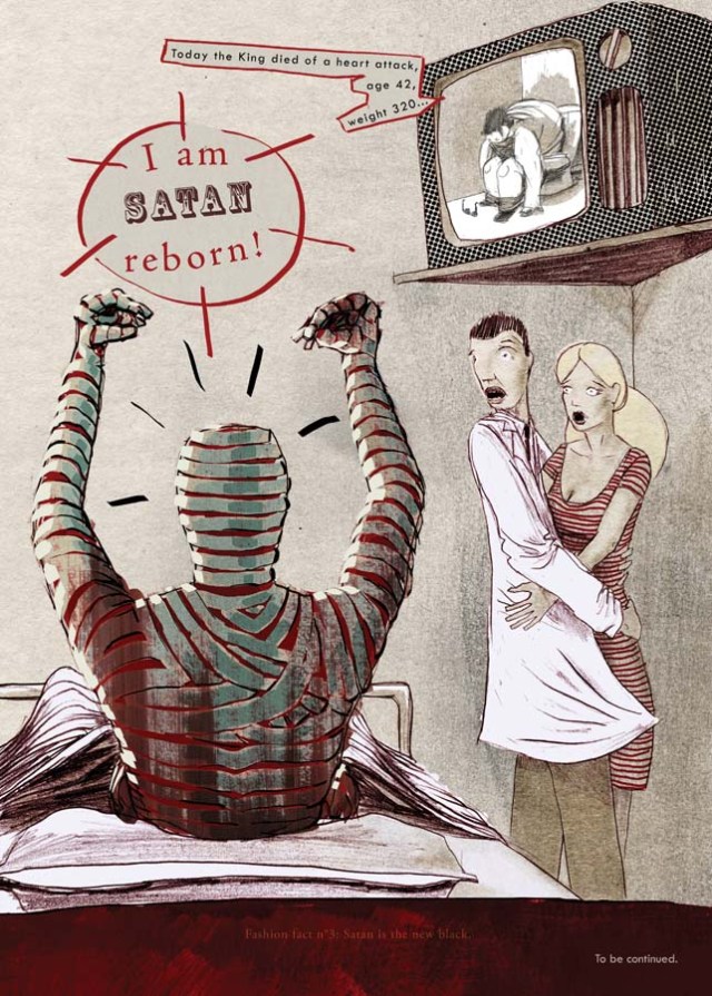 De keuze voor 6 hoofdstukken van 11 pagina’s was niet toevallig. Allereerst omdat het verhaal over Satan gaat, en zeg nu zelf: 666 pagina’s zou wat overdreven zijn, niet? Ten tweede omdat een Amerikaanse comic 22 pagina’s telt. Wie weet zou er een uitgever interesse tonen en dan kon die de strip makkelijk in 3 delen uitgeven. Ha ha.