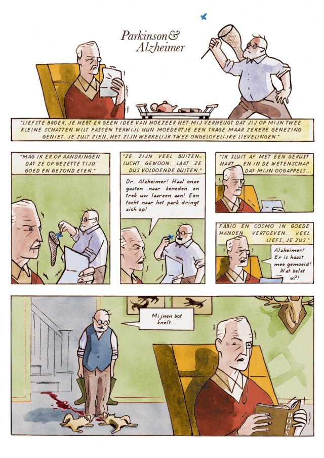 Seb C experimenteerde voor deze aflevering met een nieuwe manier van inkleuren. Deze manier zou minder tijdrovend moeten zijn. Gelukkig hebben we intussen een enthousiaste en getalenteerde inkleurder gevonden. We laten u nog even in spanning en verrassen u binnen enkele weken met zijn debuut. Parkinson & Alzheimer worden vanaf nu bestuurd door een waar triumviraat.
