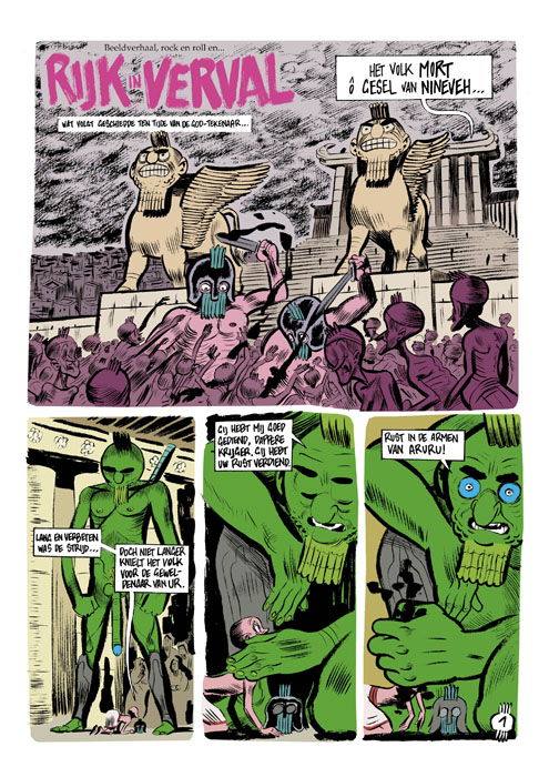 De kleuren, voornamelijk door Maarten De Saeger, passen zich wonderwel aan aan emotie en actie. Het gebeurt veel dat een bepaalde plaat of pagina plots uit een totaal ander kleurenpalet wordt samengesteld om een verhalend element te onderstrepen. Klasse.
