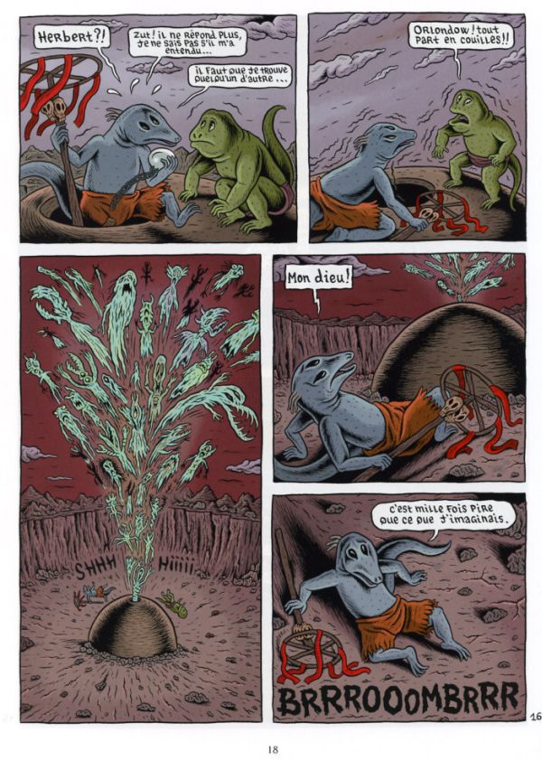 De reeks Donjon is immers niet zomaar fantasy, Donjon is fantasy met een hoek af. Een eerste leuk gegeven is dat de personages, wanneer ze geen monsters zijn, dieren zijn. Dat hebben we uiteraard al veel gezien, bij Blacksad en bij Canardo bijvoorbeeld, maar in Donjon gaat men toch een stapje verder. Zo is één van de hoofdpersonages een rode mier die even groot is als een normaal manspersoon. Awel, ik vind dat grappig.