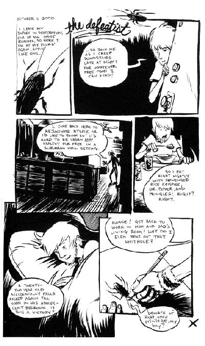 Tot vijf jaar geleden zat er in mijn strips vrij veel thematiek vanuit de punkcultuur: bands, het leven op tournee, enzovoort.