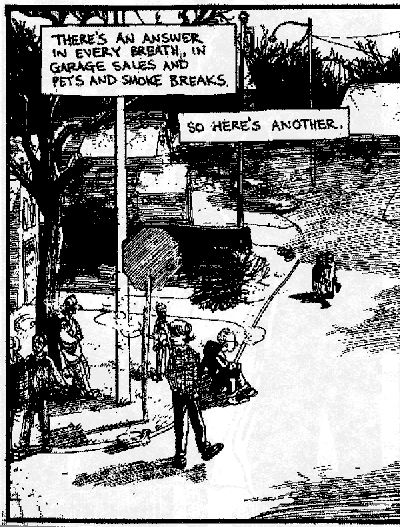 Heel belangrijk. Daarom is het einde van de strip ook zo vaag. Als je een verhaal leest met zoveel subjectieve gegevens dan is het volgens mij belangrijk om respect op te brengen voor de personages. Je moet ervan doordrongen zijn dat, als zij dergelijke onrealistische dingen beleven, dat voor hen wel de realiteit is. Zelfs al vermoeden ze zelf dat ze een waanbeeld of een hallucinatie beleven, dan blijft het wel iets dat ze echt meemaken.