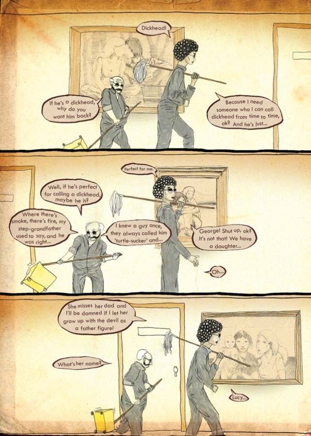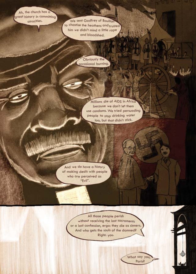 (If the letters of the comic are to small to read you can click on the pages. They will appear before you without the context of this blog. If you click them again they’ll appear in a bigger size.)