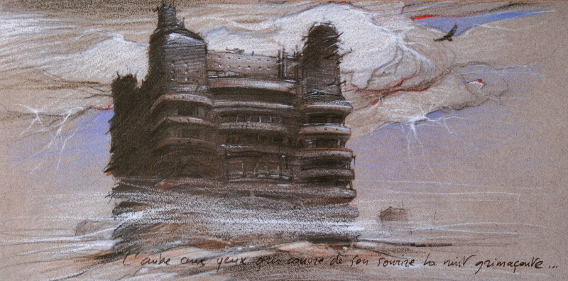 Het feit dat bijna alle prenten even breed zijn als de pagina geven het boek een filmische look. Breedbeeld als het ware. Die openheid en luchtigheid bieden weerwerk aan de zware teksten.
