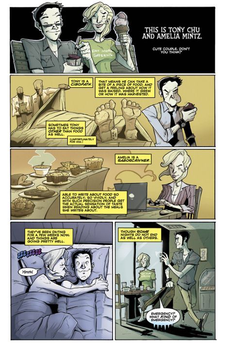 Vergezocht? Wat dacht u van het feit dat Tony een “Cybopath” is? In een soort van telepatische flits herbeleeft hij ongecontroleerd de gehele voorgeschiedenis van elk stukje voedsel dat in zijn maag beland. Een eigenschap die van dienst kan zijn voor een wetshandhaver maar die het eten van een kotelet van een op gruwelijke wijze geslacht varken tot een minder plezierige ervaring maakt.