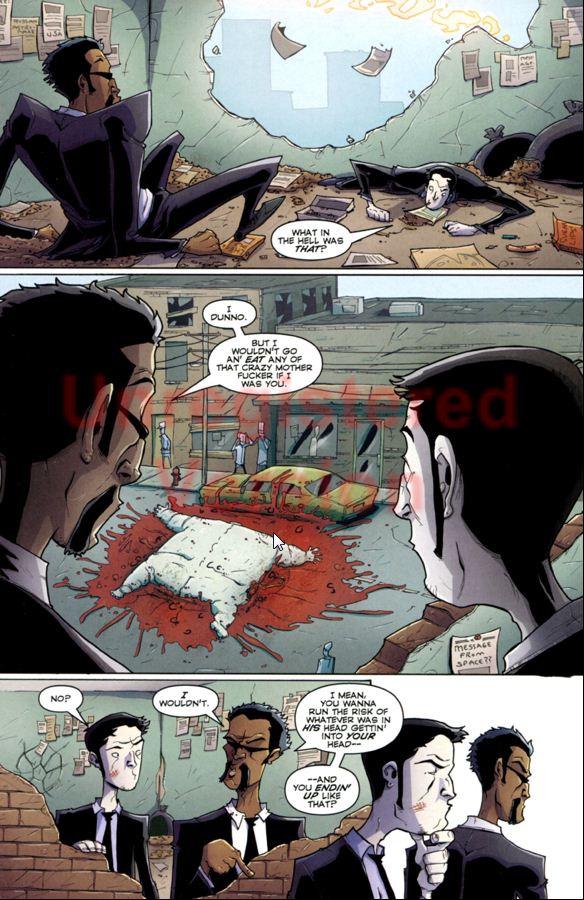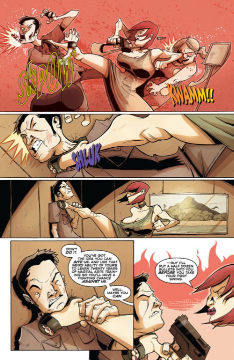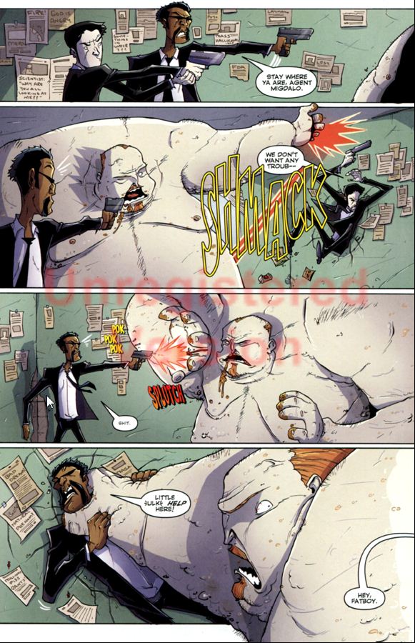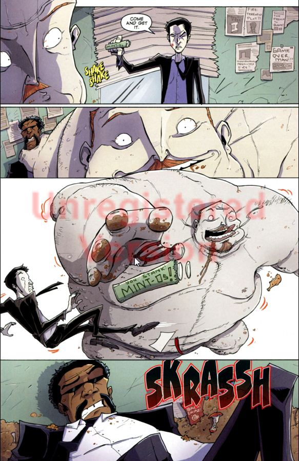 De humor van de reeks zit voor een groot deel in de tekeningen. Layman schrijft af en toe weleens een stukje dialoog of een oneliner die me hardop doet lachen (en dat gebeurt niet veel als ik iets lees) maar Guillory is een meester in het visualiseren van de nodige mimiek, timing en slapstick om de gags over te brengen.