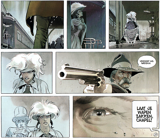 Dorison en Nury zijn uiteraard ook geen beginners meer. De eerste is vooral bekend van “Het derde testament”, “Heiligdom”, “Long John Silver”, “Het syndroom van Abel” en “Prophet”, allemaal schoten in de roos wat mij betreft. Nury heeft dan weer “Necromancy” geschreven, wat iets mindere koek was. Hier leveren ze samen echter zeer goed werk af.