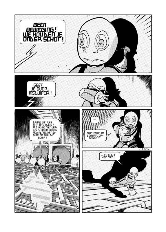 Een klein minpuntje is dat de plaatsing van de tekst in de ballons soms wat raar aanvoelt. Te vierkante blokken tekst in een ronde ballon. Ik hoor andere stripmakers een zucht van verlichting slaken. Het is immers moeilijk opboksen tegen een strip met zo weinig minpunten.
