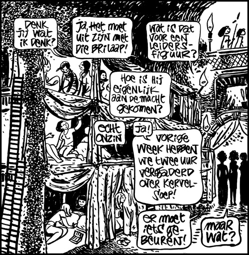 Die zotternijen en de waanzinnige kronkels van de plot maken dat je deze strip enkel kan ervaren als een getikte trip evenwijdig met en doorheen de stripgeschiedenis. Vitalski en zijn kornuiten verwijzen immers naar hartenlust naar striptradities of andere populaire cultuur. Zo komen een soort van Sus Antigoon en de piraten van in Asterix (met Mr. T. als de negerpiraat!) even om het hoekje kijken of zegt een personage dat struikelt doodleuk: “Aargl – Ik struikel!”. Er is ook plaats voor diepgang, althans als je zoals ik van diepgang spreekt bij het lezen van als dialogen verpakte, geflipte filosofische logica als: “Je weet meer van mensen dan van vrouwen.”