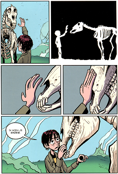 Het is meteen duidelijk dat TenNapel een animatiemaker is in die zin dat het verhaal enorm veel vaart heeft en op geen enkel moment stilvalt. Toch wel straf voor een strip van 270 pagina’s. Af en toe passeert er wel eens een toevalligheidje dat minder geloofwaardig is en dat als functie heeft de plot voort te drijven, maar dat stoort eigenlijk geenszins.