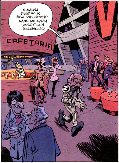 Extra pluimen gaan naar Hubert, die de inkleuring verzorgde. De sfeervolle scènes op de maan en het modernistisch aandoende decor dat Yoann aan het papier toevertrouwde worden door Hubert zeer doeltreffend en atmosferisch ingekleurd.