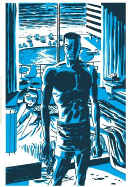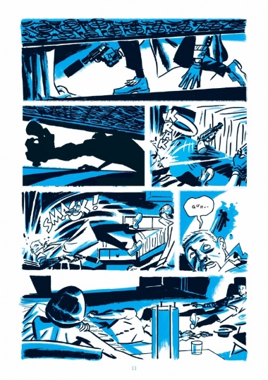 Cooke mengt dunne, strakke lijnen op de voorgrond met dikke, grove penseelstreken op de achtergrond en creëert zo een zekere diepte en geloofwaardigheid in zijn tekeningen. De grovere decors zorgen voor een perfect tegengewicht voor zijn iets tekenfilmmachtigere figuren. Een meesterzet ook om voor een monochrome blauwe inkleuring te kiezen.