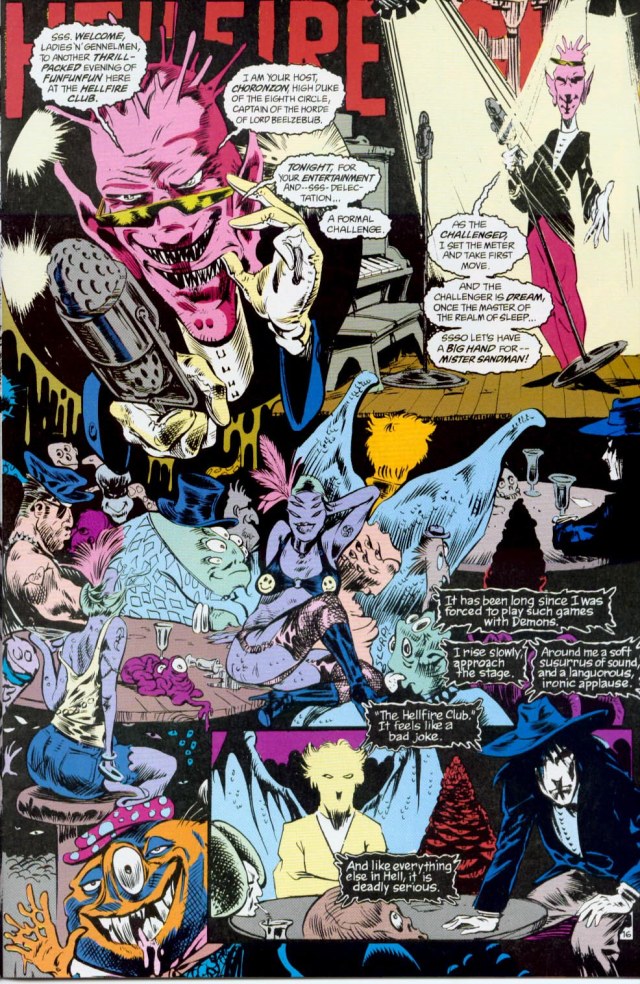 In deze eerste afleveringen schippert Gaiman nog een beetje tussen de wereld der superhelden, waarvan zijn personage eigenlijk deel uitmaakt, en de meer postmoderne aanpak die hij later zal hanteren. Aangemoedigd door Karen Berger stuurt hij de reeks in de tweede verhaallijn steeds meer richting horror, fantasy en drama.