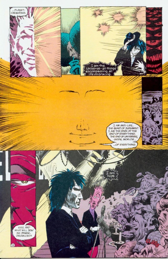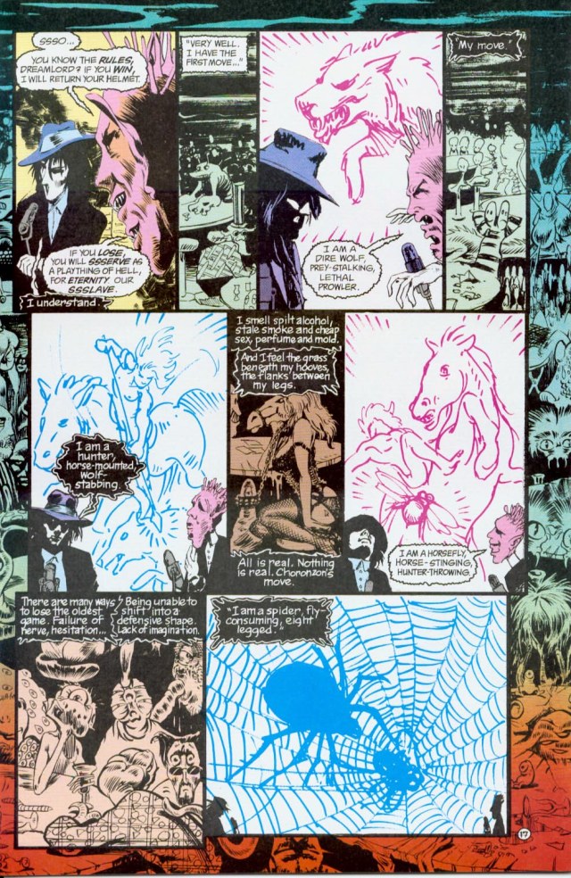 Dit concept voegt enorm veel toe aan de reeks. Het geeft Gaiman een kapstok waaraan hij gelijk welke menselijke tragedie die hij wil behandelen kan ophangen. En dat is ook steeds zijn doel geweest: entertainende verhalen schrijven over de menselijke psyche. Gaiman gebruikt fantasy en horror om het te hebben over trauma’s, emoties, frustraties, kleine verdrietjes en ander menselijks. Gaiman schrijft niet enkel voor maar over ons. En dat is de grote kracht van de reeks geweest.