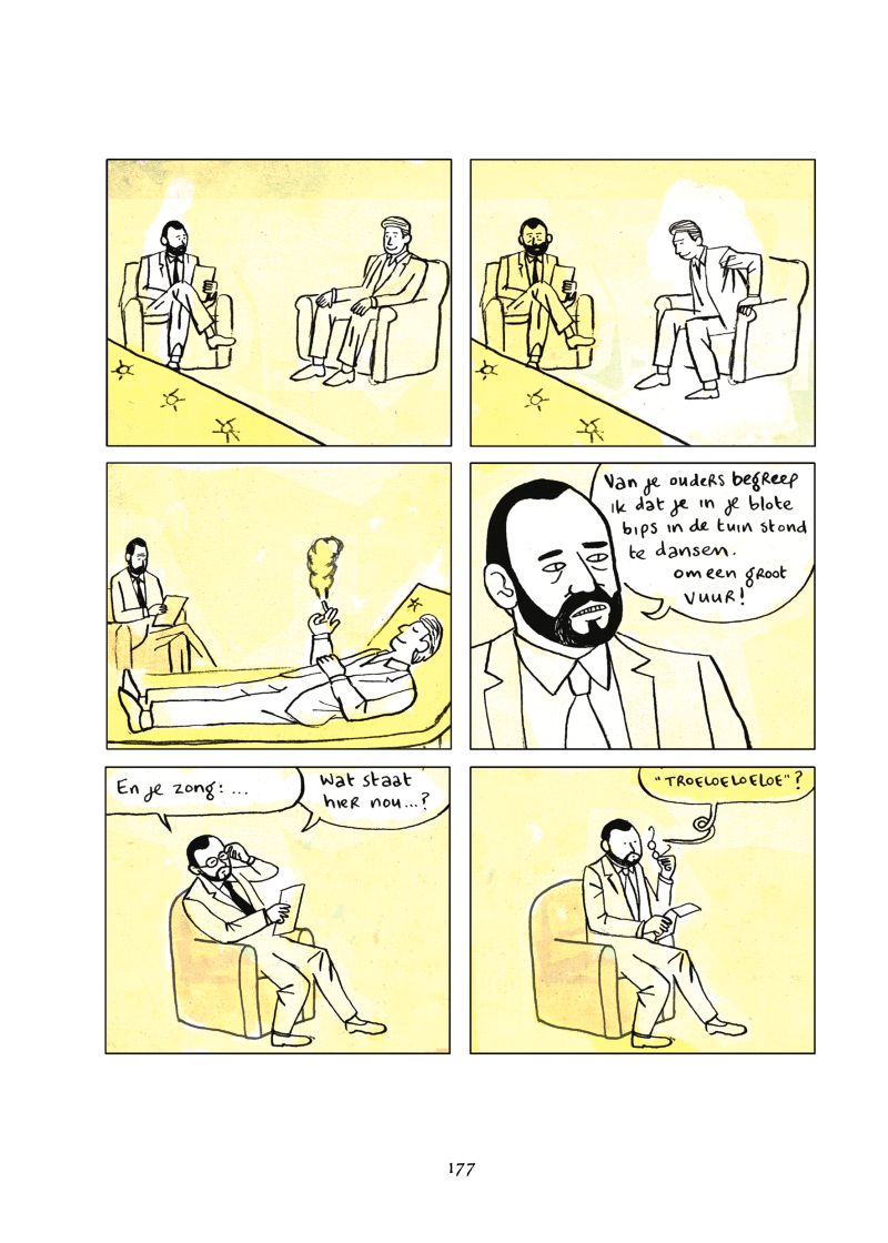 Na het eerste aantal pagina’s: geen voor de hand liggende tekenstijl, afbeeldingen die kant noch wal raken, een quote van een filosoof,… bekroop me de angst dat dit een pedant boek zou worden. Zo eentje waarin de maker dweept met zichzelf en wat er die, oh zo belangrijke, zelf op de lever ligt. Hoe slim en onbegrepen dat, net niet autobiografische, personage wel is. Gelukkig haalt van Raffe zijn hoofdpersonage (zichzelf dus) al snel onderuit en slaat hij aan het relativeren.