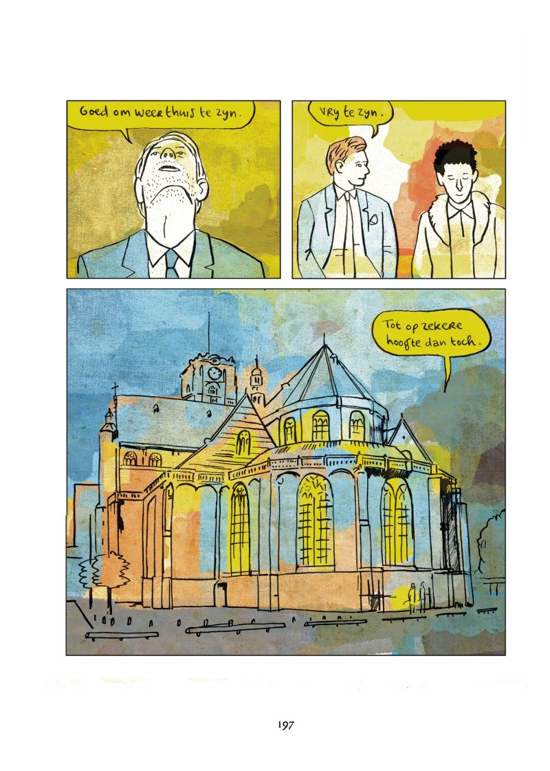 Ook verwijst van Raffe soms naar de in het boek aangehaalde kunstenaars door zijn eigen stijl door hen te laten beïnvloeden op de desbetreffende pagina’s. Dat gaat er bij mij altijd in.