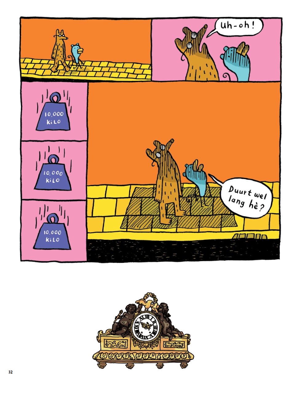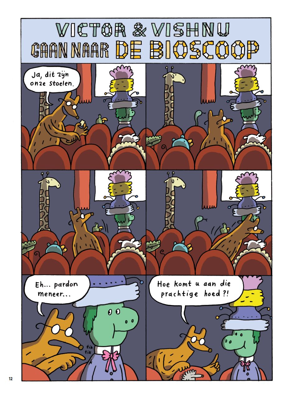 Dit soort ongein is onontbeerlijk voor de humor in deze strip, maar Funke is van meerdere markten thuis. De viscerale, brutale slachtingen en de slapstick haalde ik al aan, maar nog belangrijker is de interactie tussen Victor en Vishnu. Sommige verhaaltjes en grapjes bestaan quasi helemaal uit simpele gesprekken tussen de twee. Die gesprekken gaan meestal ook over dagdagelijkse onderwerpen als een taartje of video games maar de absurde logica waar de twee vrienden gebruik van maken drijven zulke items al snel naar een van absurditeit en surrealisme doordrongen conclusie. En wij dachten dat de Belgen een monopolie op surrealisme hadden…