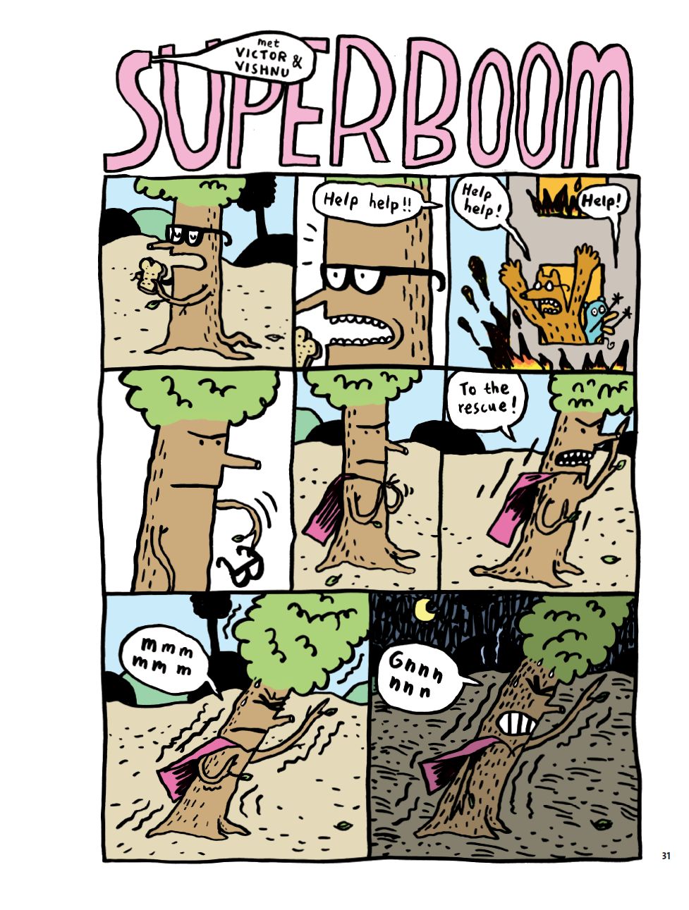 Victor en Vishnu wordt in de markt gezet als een strip voor kinderen en waarschijnlijk jaagt dat ergens ter lande wel wat pezewevers de kast op. Het bloed, de kak (of “poep” bij de Noorderburen), verwijtwoorden als “eikels” en de verwijzingen naar seks: vele zuurpruimen en andere vastgeroeste conservatieven vinden dat waarschijnlijk allemaal iets teveel van het slechte voor hun bloedjes van kinderen. Laat dat nu echter net zijn wat kinderen willen: de verboden vruchten. Zo is deze strip niet enkel grappig maar ook spannend.
