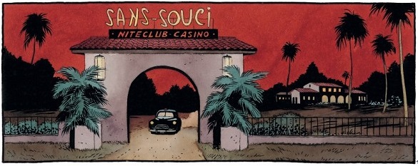 Ook in de tekeningen van Berthet komt dit naar voor. De mooiste platen in dit album zijn de rustpunten waarop de tekenaar slechts de locatie schetst: de gebouwen en auto’s van die tijd heffen dit boek naar een hoger niveau en dragen bij aan de algehele esthetiek.