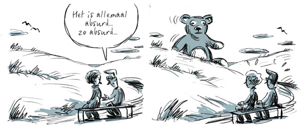 Het_Zotte_Geweld_03Geen wonder dat het dus de personages zijn die het boek pas echt meeslepend maken. Niet de plot, niet de tekeningen en ook niet de “waarheden” die de makers van iets diepgravender boeken graag bijeen sprokkelen. Die personages zijn allen zo goed uitgewerkt en zo menselijk dat je ze als lezer volledig begrijpt. Begrip brengt empathie met zich mee en empathie zorgt voor een bijzondere leeservaring.