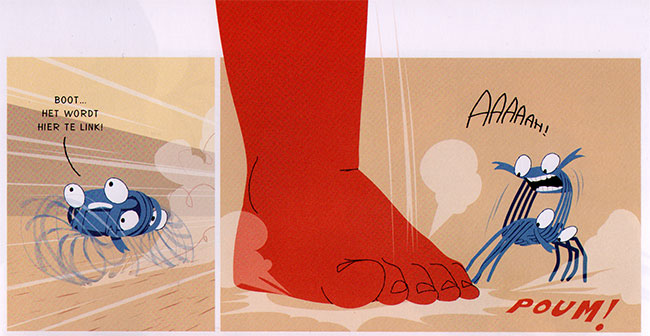 Het innovatieve krabje en zijn twee beste maatjes lichten enthousiast hun soortgenoten in maar botsen daarbij al snel op heel wat tegenwerking. De diersoorten die boven hen uit torenen in de voedselketen zijn bijvoorbeeld niet gediend van deze ontwikkelingen. Hun prooi zou immers zomaar eventjes weerbaarder kunnen worden. En dan zijn er nog de soortgenoten van de drie vrienden die naar de oude stempel leven. Hen zint die nieuwerwetse manier van voortbewegen ook al niet.
